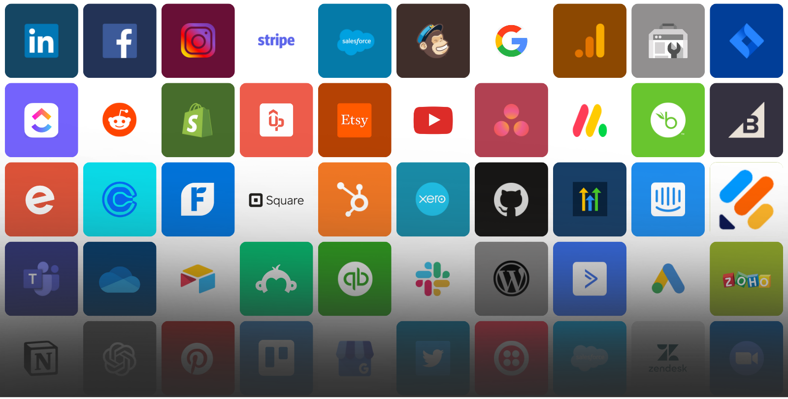 The dash integrates ALL your tools into a unified dashboard. From CRM and accounting software to project management solutions, marketing tools, ticketing systems and more, our team does the technical work so you can focus on the work-work.